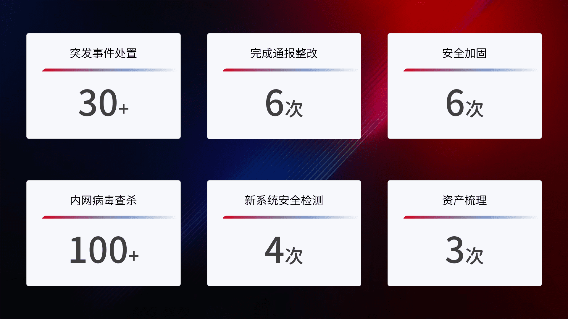 网络安全加固与风险管理:通过技术加固手段,,,如加强区域隔离,,缩减攻击内网横向移动的范围;优化现有网络安全管理制度,,,降低网络威胁暴露面,,,,减少被黑客攻击的可能性。。